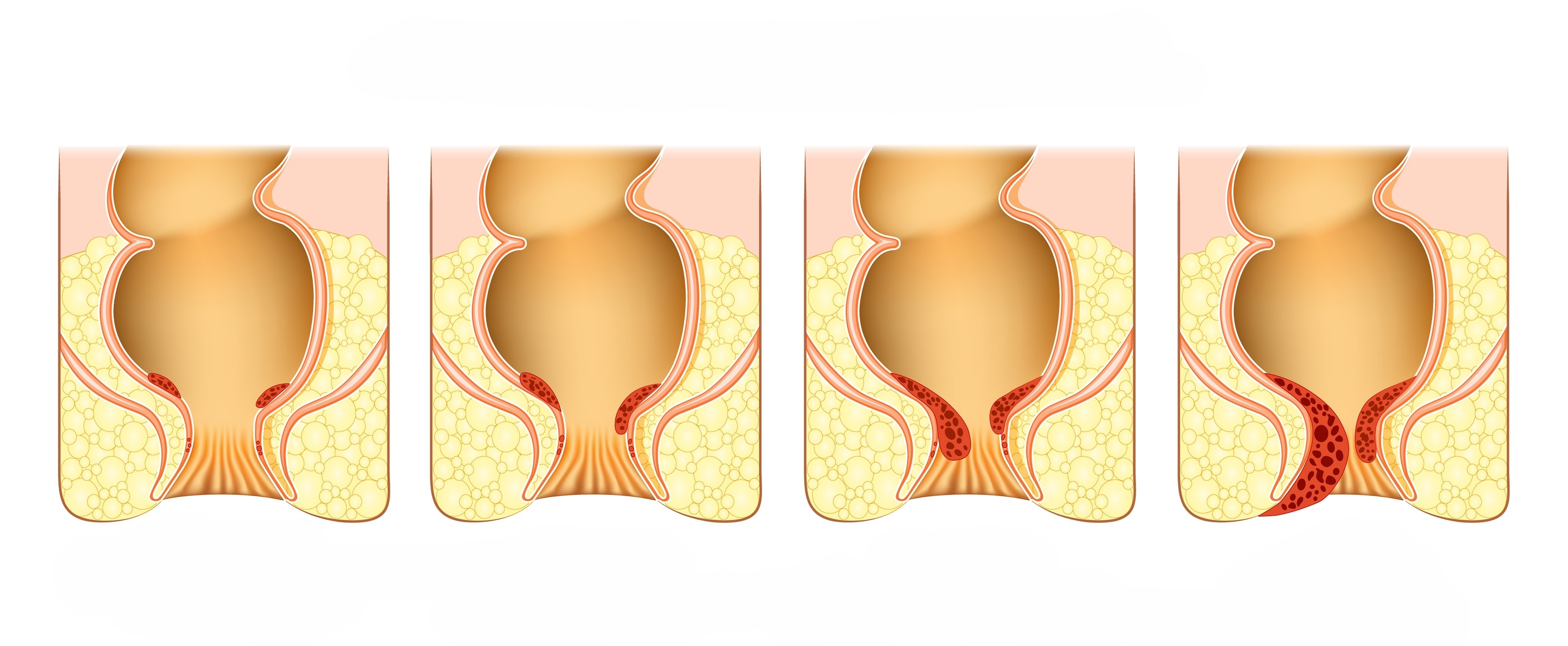 Rozwój hemoroidów - 4 stadia